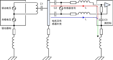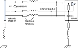 4)此處電機(jī)平臺和測控柜已有接地,通過傳感器連接線屏蔽層又將兩者連接,形成地環(huán)路。然而實際工程應(yīng)用中地環(huán)路往往不可避免地存在,本例中若沒有屏蔽層依然會通過C2、電纜和C3產(chǎn)生高頻地環(huán)路,從這方面看屏蔽層改變了環(huán)路路徑。