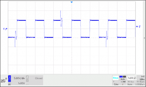 調(diào)試中發(fā)現(xiàn),驅(qū)動器上電但未開啟輸出,電機(jī)轉(zhuǎn)軸處于自由靜止?fàn)顟B(tài),測量到一個較大的值。用示波器測量傳感器輸出,發(fā)現(xiàn)100kHz脈沖上每個幾個周期出現(xiàn)一些尖峰振蕩,經(jīng)過比較器后多了些脈沖,導(dǎo)致測頻結(jié)果高于100kHz。那么干擾信號從何而來?首先懷疑是驅(qū)動器,驅(qū)動器斷電干擾消失。把傳感器電纜從傳感器處拔出,100kHz和干擾都沒有了。證明干擾由驅(qū)動器產(chǎn)生,通過驅(qū)動器輸出線、電機(jī)、扭矩傳感器及連線耦合到功率分析儀。