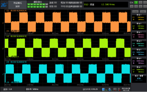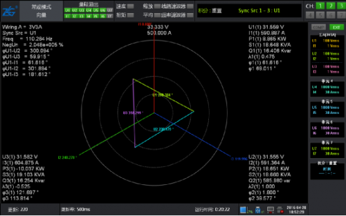 此時將系統(tǒng)運行起來,通過功率分析儀的數(shù)據(jù)和波形再次進(jìn)行驗證,電壓波形圖和矢量圖都很完美。