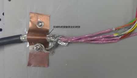 從安全方面考慮,三個機(jī)柜都必須接大地,強(qiáng)電線路與信號線分開避免干擾這些都是要遵循的基本原則。實際機(jī)柜間位置較遠(yuǎn),接地對于高頻干擾改善不多,只作為安全措施。解決這種問題一般考慮是從干擾源、傳播路徑、敏感設(shè)備三方面著手。驅(qū)動器和功率分析儀是成型的設(shè)備,不便于改動,考慮從傳播路徑入手,使用多芯屏蔽電纜連接扭矩傳感器到測控柜,傳感器端屏蔽層連接到傳感器外殼,也與電機(jī)平臺連通,另一側(cè)屏蔽層接到測控柜機(jī)殼。最初的時候屏蔽層通過一根較長的線連接到測控柜,發(fā)現(xiàn)并沒有改善,最后使用銅片將整根線壓到機(jī)柜,干擾得到很大衰減。