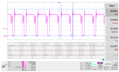 圖1 穩(wěn)態(tài)工作時(shí)MOS管波形Vds_max=57.2V