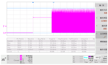 圖3 起機(jī)瞬態(tài)時(shí)MOS管波形Vds_max=59V